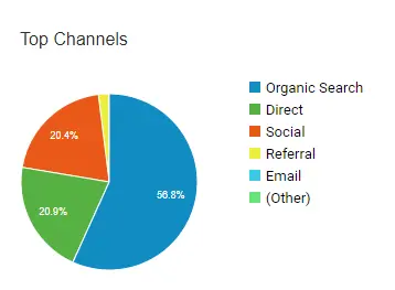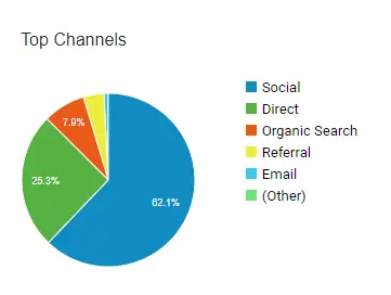 In the first year, only 7.9% of traffic to my website was organic and 62.1% was from Social sites.