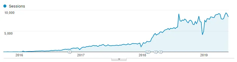 This chart shows you the organic traffic from the beginning until June 1st 2019 (3.5 years)