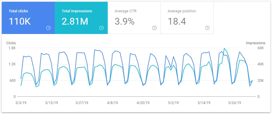 Here is a view of the last 3 months in Google Search Console