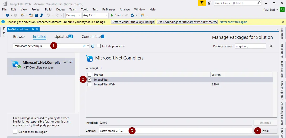 - Search for Microsoft.Net.Compilers